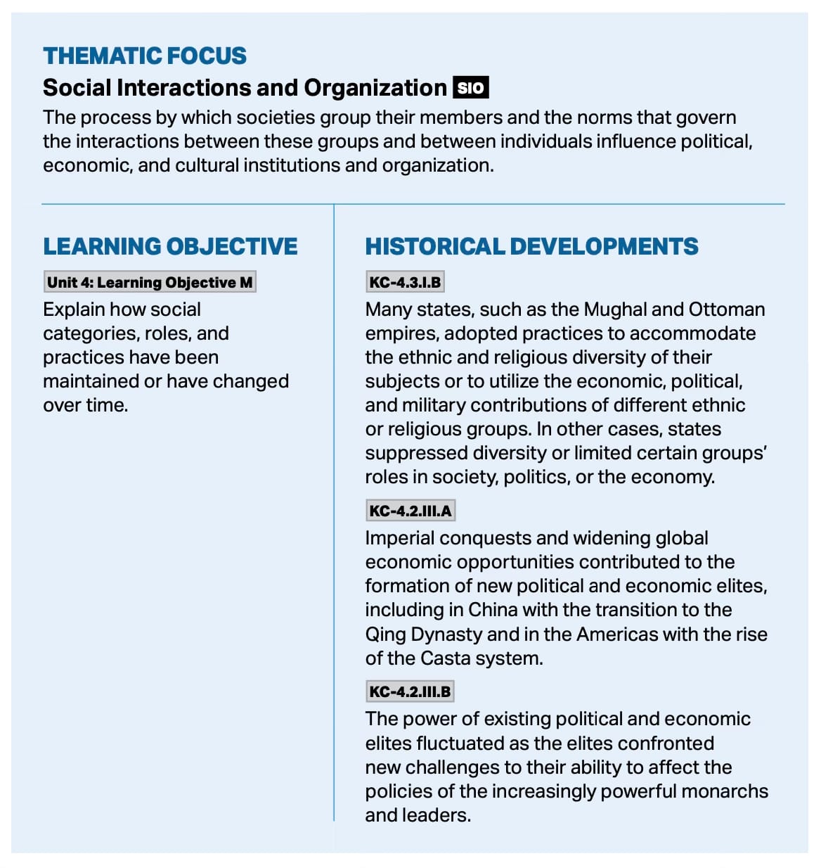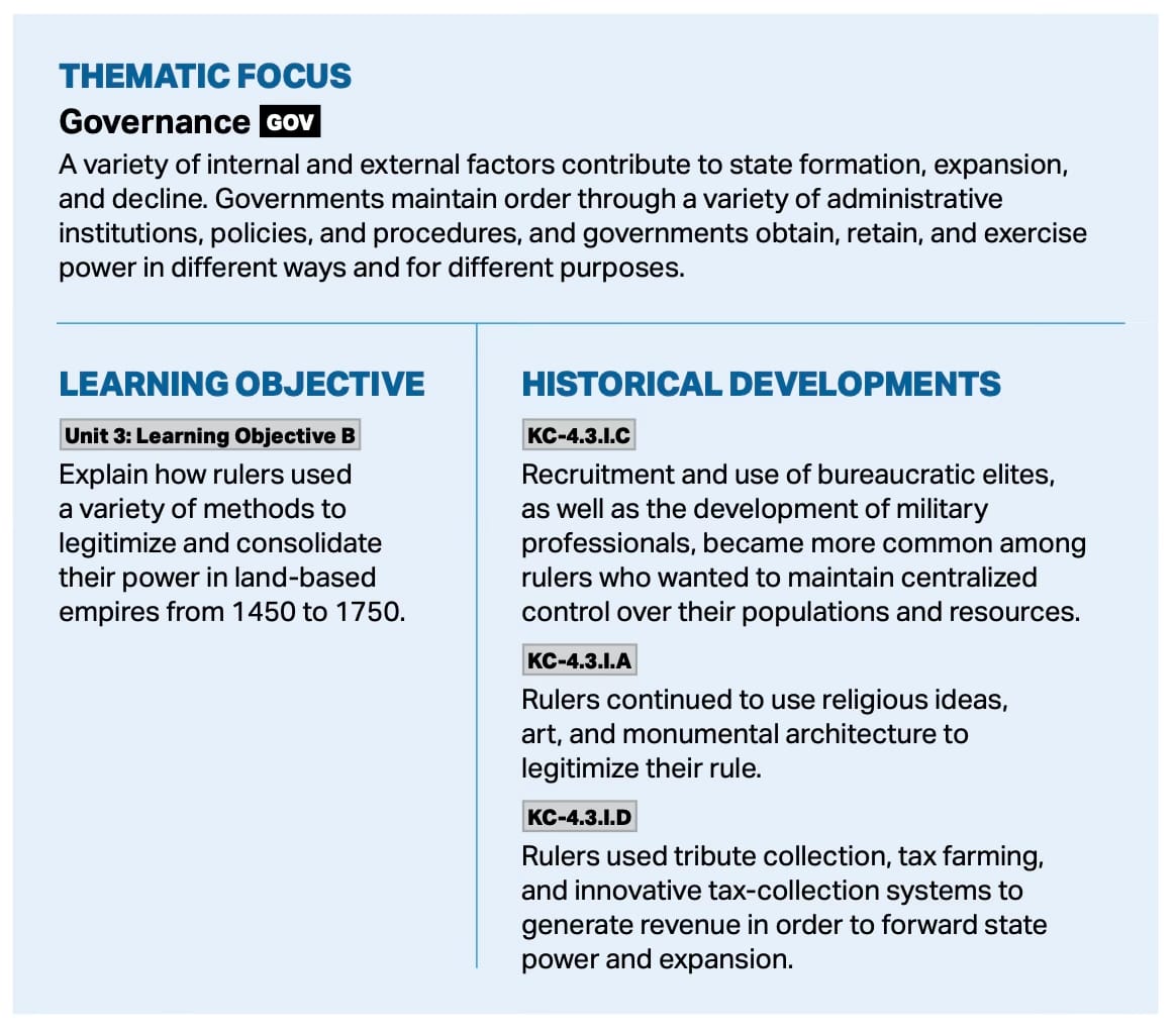 From pages 76 and 89 of the AP World History Course and Exam Description
