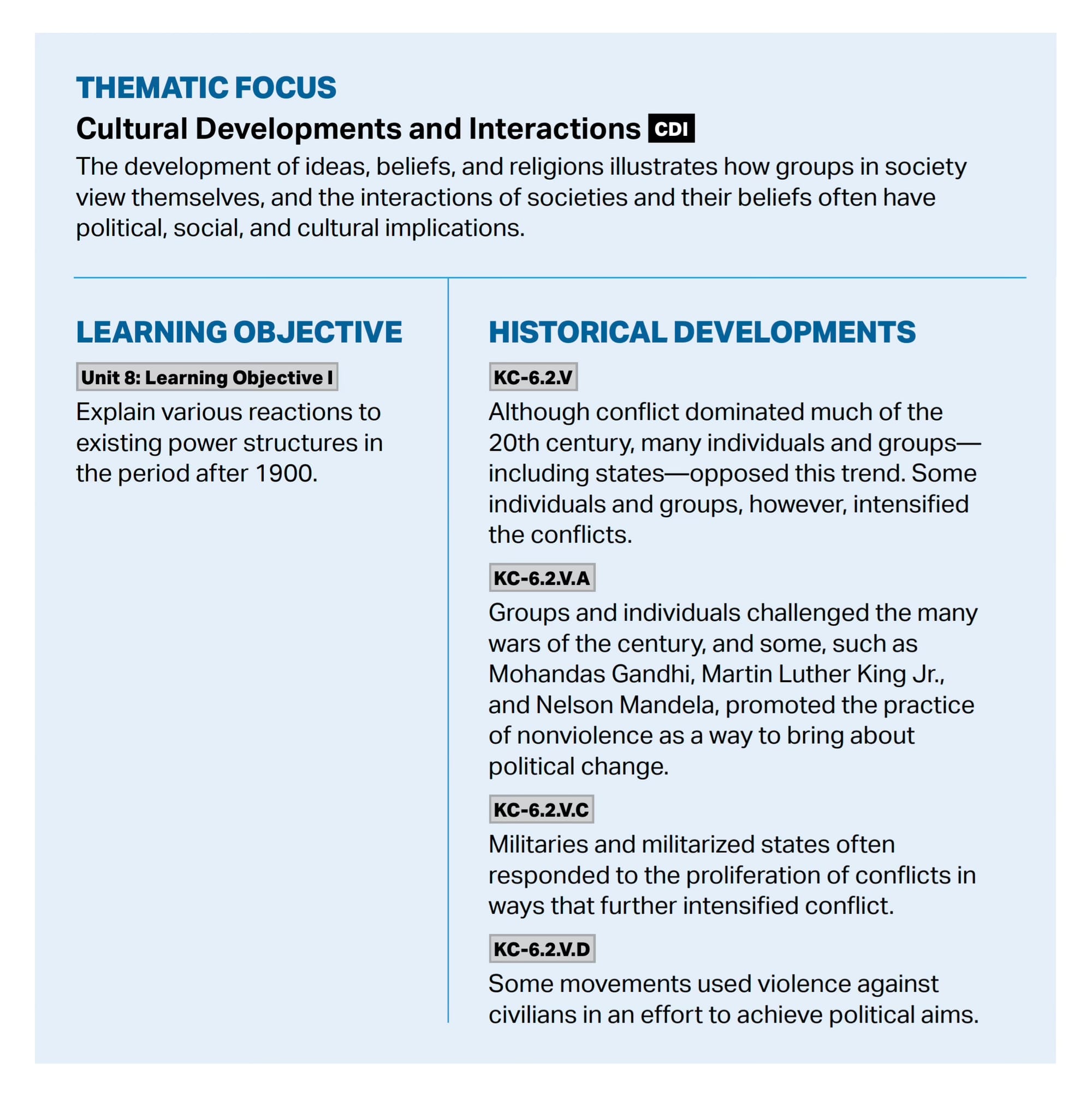 From pages 134 and 151 of the AP World History Course and Exam Description