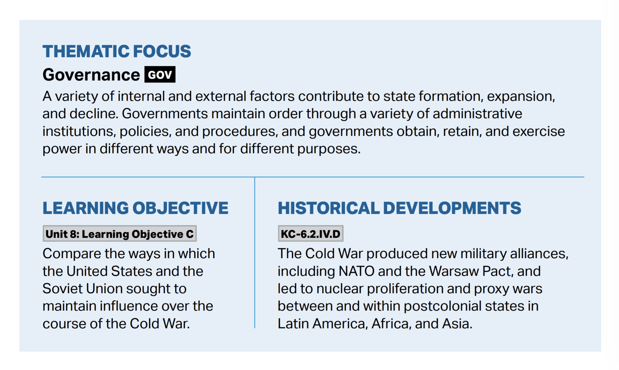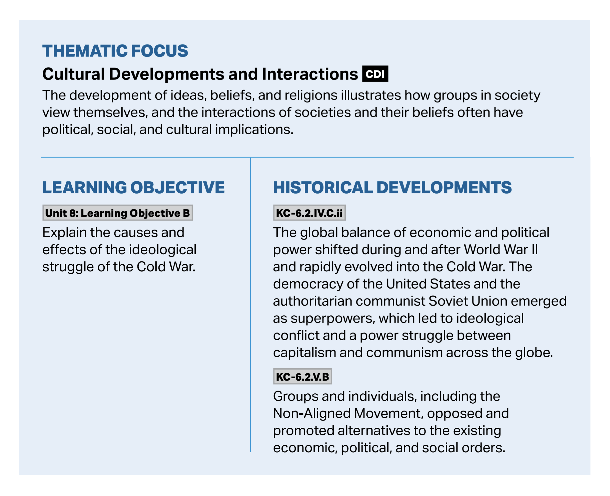 From pages 145 and 146 of the AP Modern World Course and Exam Description