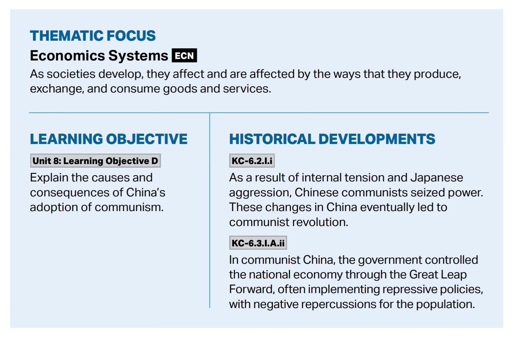 From pages 134, 147, and 148 of the AP World History Course and Exam Description