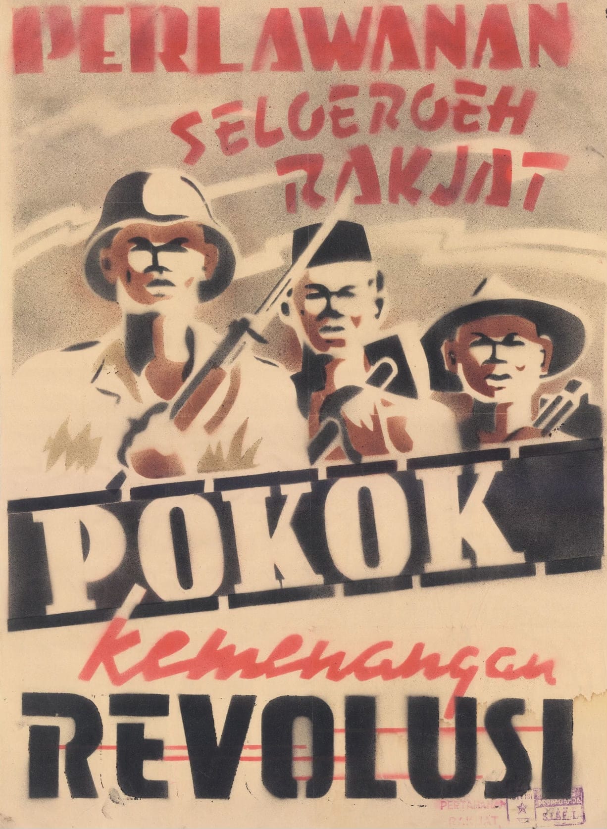 Left: Soekarno reading the Indonesian Declaration of Independence. Source: Wikimedia Commons. Right: Indonesian Independence Poster, c.1945. Source: BBC.